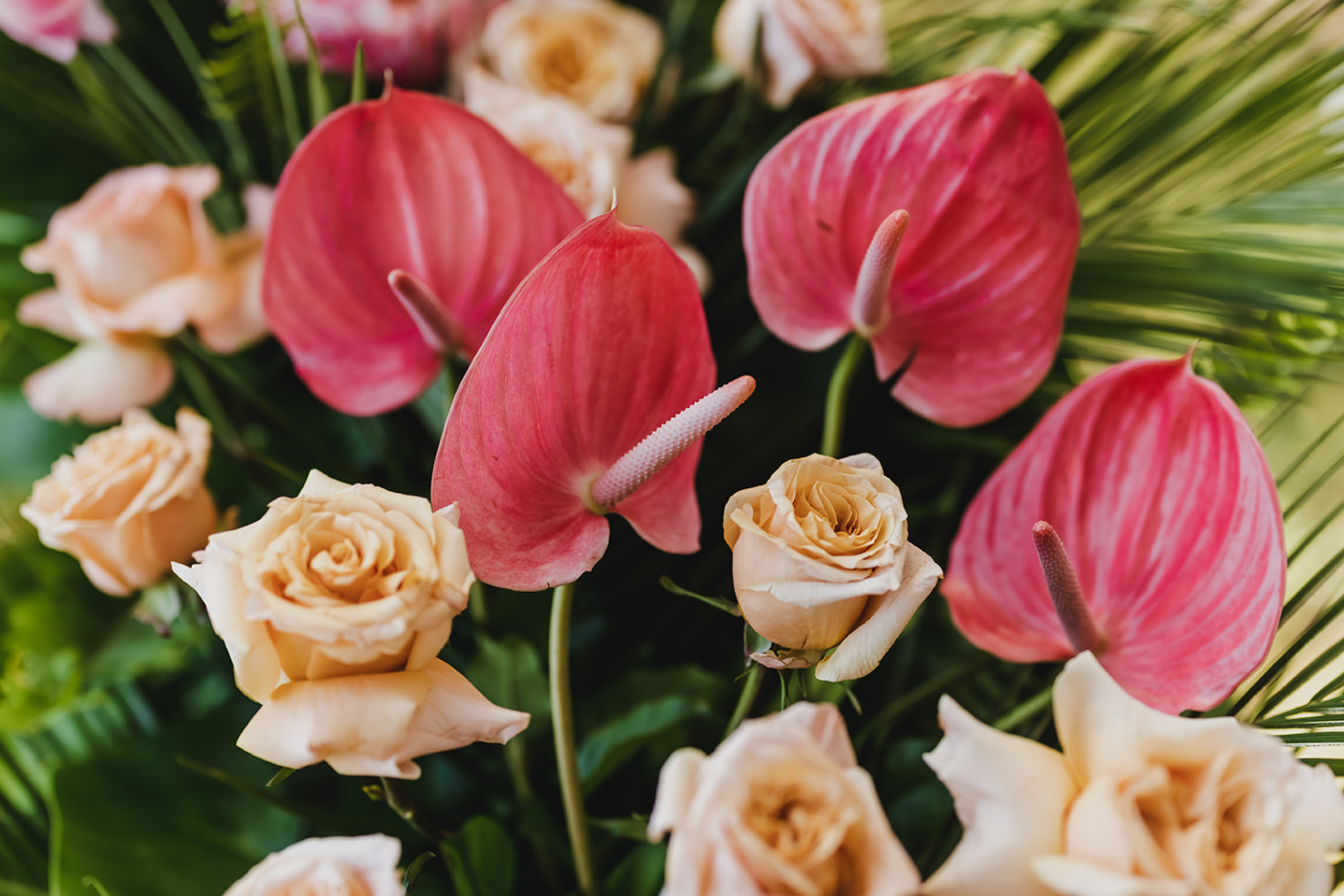 Curate a mini bouquet with seasonal blooms and greenery.